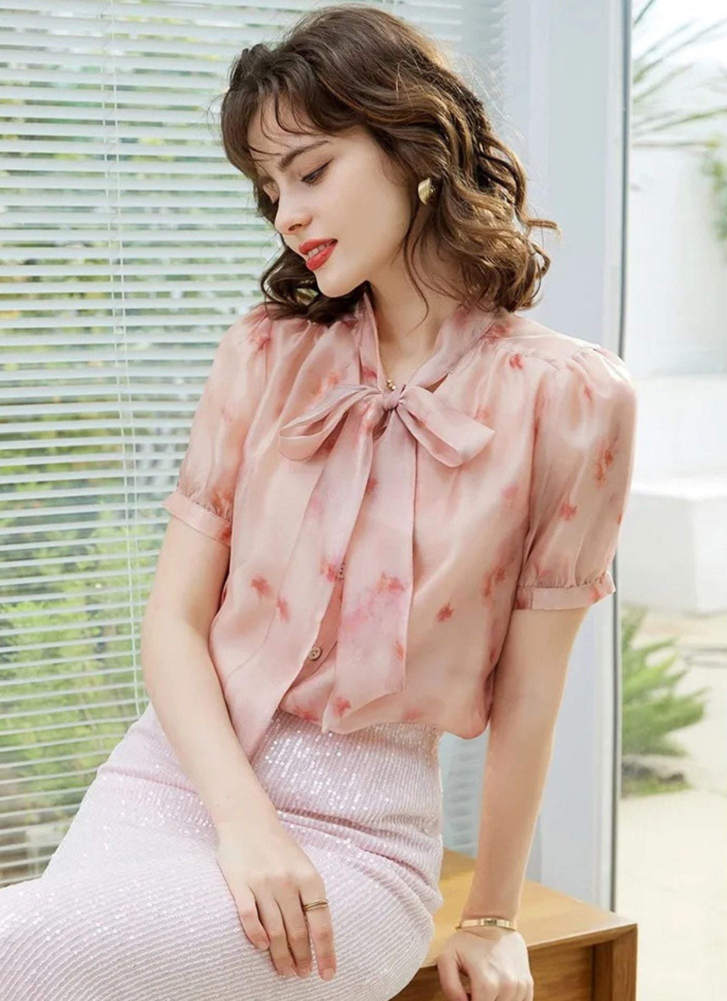 Lekka i świeża, ta z bufkami ma delikatny wzór oraz dekolt w kształcie litery V z koronkowym detalem dla kobiecego akcentu. Jej luźny krój i miękki materiał poliestrowy zapewniają komfort przez cały dzień, idealna na ciepłe dni. Można ją nosić z dżinsami dla casualowego wyglądu lub ze spódnicą dla swobodnego stylu.